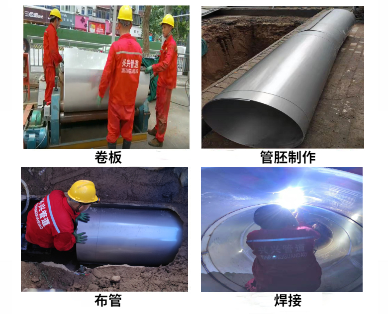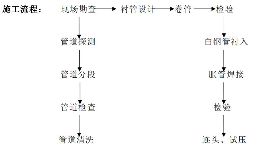 不锈钢内衬技术就是在待修复管道两端开挖作业坑,用制管设备把薄壁不锈钢制成符合尺寸要求的管坯,管坯利用专用小车输送到待衬管道内,在管道内氩弧焊焊接不锈钢管坯的纵缝和环缝,管道端口采用厚不锈钢过渡板将薄壁不锈钢内衬管与原管道连接为一体,以使原管道改造为内壁是不锈钢的复合管道,从而达到防渗漏、防腐蚀、提压的目的。