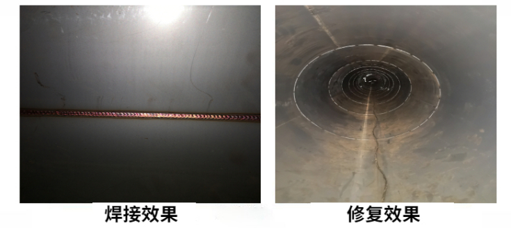 主要焊接工作在管道内完成,地面上只需少量的操作人员进行配合,以做好管内焊接材料供应、安全保障等工作。主要施工机具包括发电机、氩弧焊机、运管小车、氩气系统、电缆等。与其他修复技术比,施工占地面积小,施工机具少又相对简单。